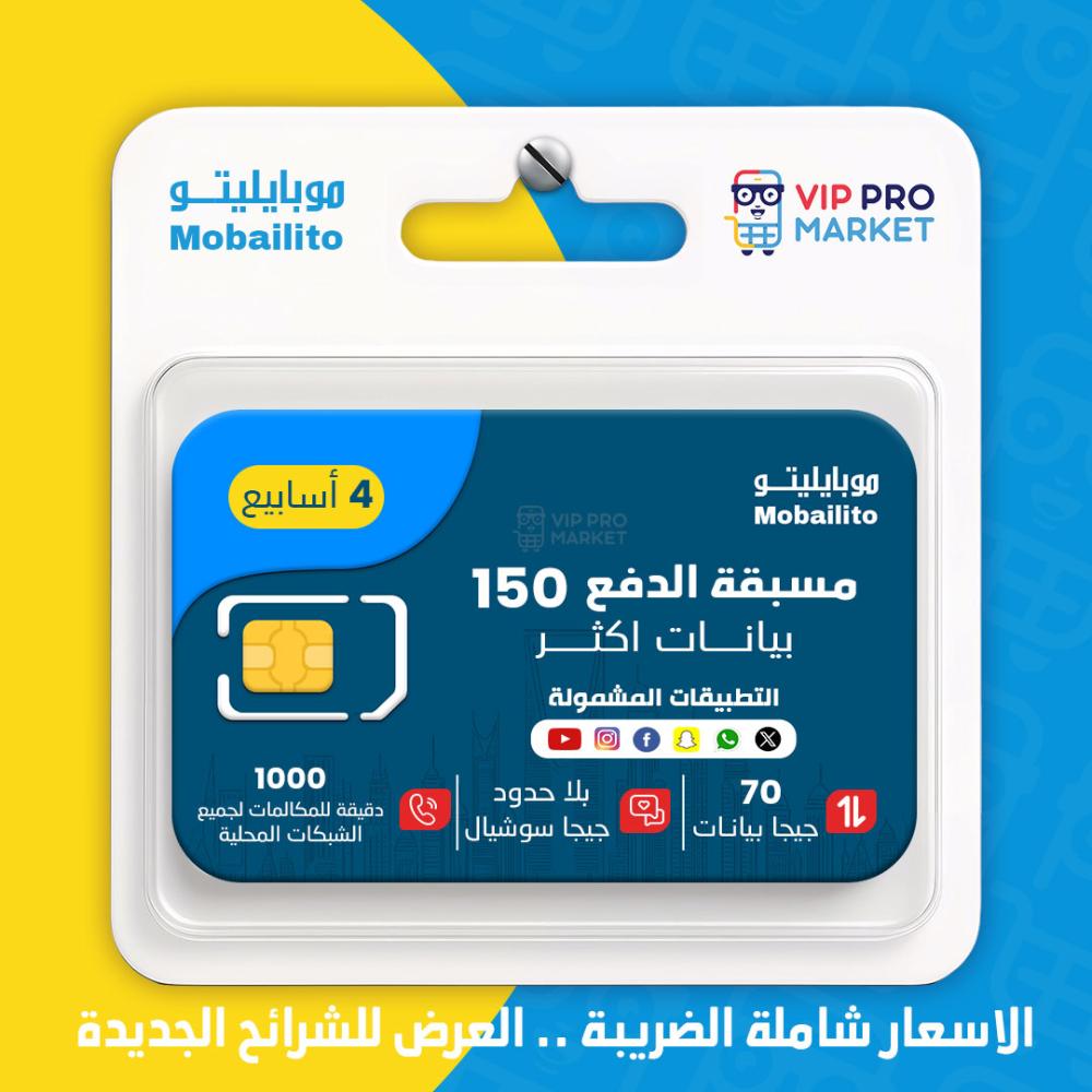 باقة مسبقة الدفع 150 جيجا بيانات اكتر صالحة لمدة 28 يوم