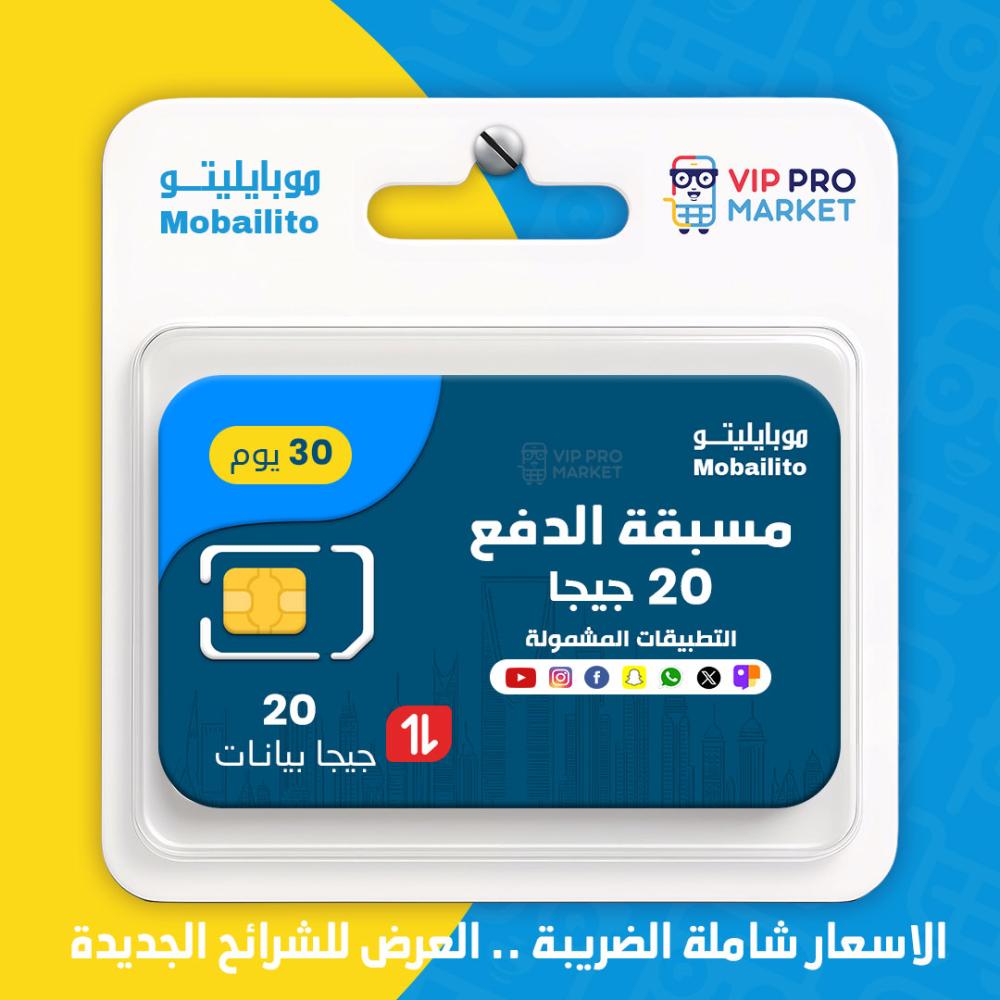 باقة مسبقة الدفع 20 جيجا صالحة لمدة 30 يوم